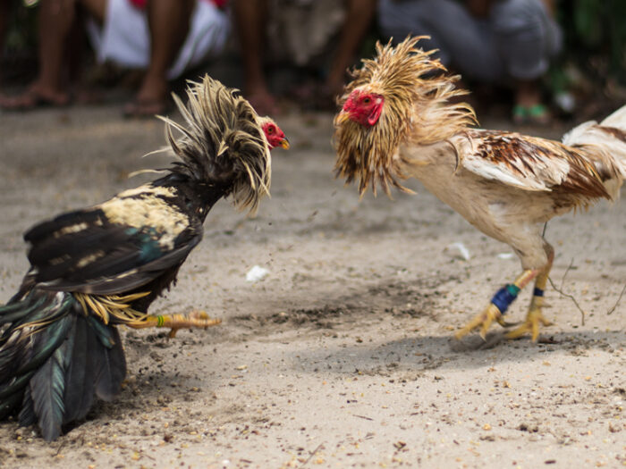 刃物を使うため、試合は数秒から数分で決着します。一撃が急所に当たれば即死することもある。どちらかが死ぬまで戦わせる。どちらも動けなくなったら、審判が鶏を交互につつかせ、反撃できない方が負けとなる。